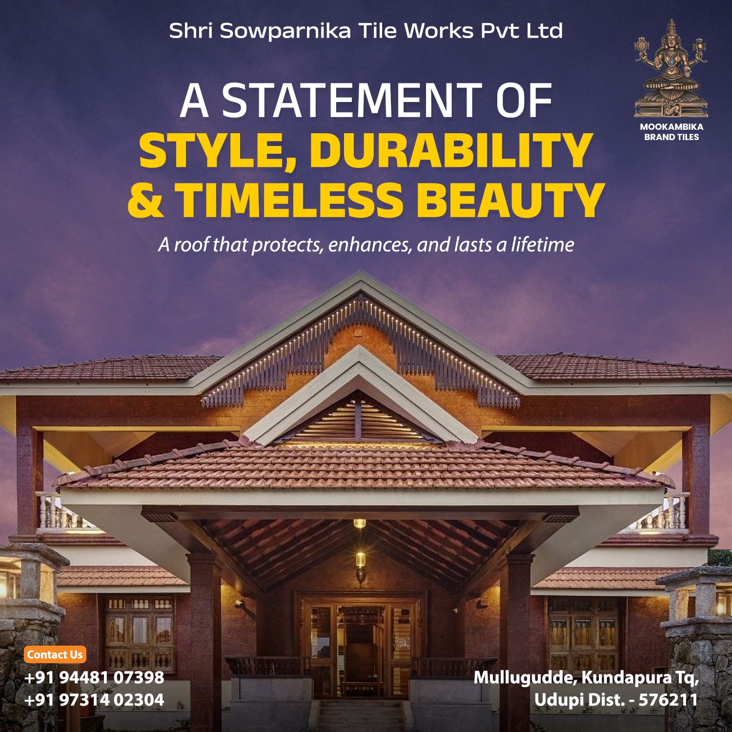 Established in 1995, Shri Sowparnika Tile Works has been a trusted name in manufacturing premium clay roofing tiles under the Mookambika Brand.